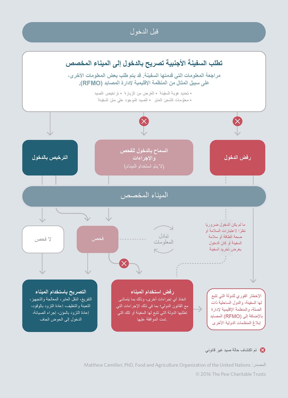 تعتبر اتفاقية تدابير دولة الميناء ) PSMA ( — والتي تعرف رسميًا باسم اتفاقية منظمة الأغذية والزراعة التابعة للأمم المتحدة )الفاو( لعام 2009 ؛ والخاصة باتفاقية تدابير دولة الميناء بغرض منع، وردع والقضاء على عمليات الصيد غير القانونية، وغير المُبَلَّغ عنها وغير المنظمة 4—أداة منخفضة التكلفة لمكافحة عمليات الصيد غير القانونية وغير المُبَلَّغ عنها وغير المنظمة. وتعتبر إجراءات التفتيش في المواني أقل تكلفة وأكثر أمانًا؛ وذلك مقارنة بعمليات المراقبة والمتابعة وتفتيش السفن في البحار. وفي الوقت نفسه، فإن من شأن عمليات التفتيش أن تحد من الحوافز والمغريات التي يشكلها ذلك النوع من الصيد غير المشروع؛ لأن ذلك سوف يجعل بيع الأسماك التي تم الحصول عليها بطريقة غير قانونية أمرًا أكثر صعوبة. ومع موافقة المزيد من الدول على الامتثال للاتفاقية ومواءمة تدابيرها الخاصة بدولة الميناء فلن تعد عمليات الصيد غير القانونية وغير المُبَلَّغ عنها وغير المنظمة من المشروعات عالية المخاطر وعالية العائد؛ ولكنها سوف تصبح مشروعًا عالي المخاطر وقليل العائد. إن ذلك يشكل الغرض النهائي لمنظمة "الفاو" من وضع اتفاقية تدابير دولة الميناء ) .)PSMA