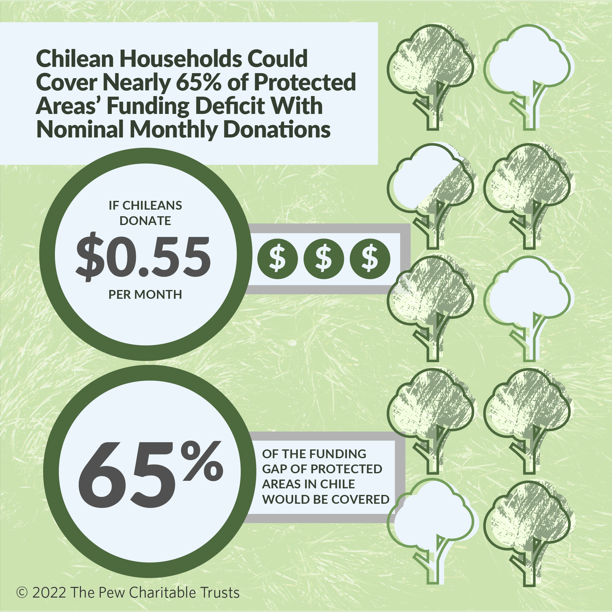 Given these challenges, CSF sought to design a donation-based financing mechanism to supplement entrance fees and other tourist-generated revenue. And, in a summer 2021 survey of 1,545 households, CSF found that nearly half of Chilean households would be willing to pay at least $6.45 per month to help improve protected areas’ management and sustainability.