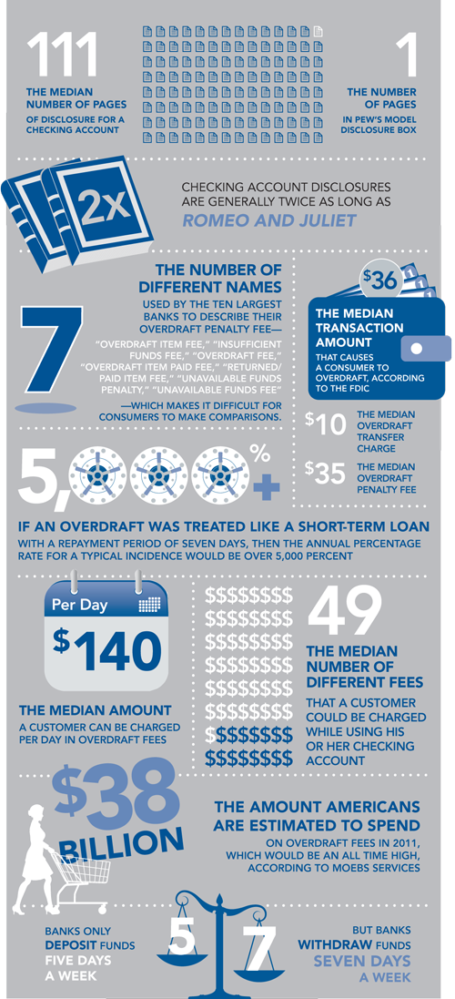 In researching checking accounts, Pew charted the median and the range for many fees, the variations in key practices and the extent of certain practices. The figures below display some of Pew's most important findings from its recent report, "Hidden Risks: The Case for Safe and Transparent Checking Accounts."