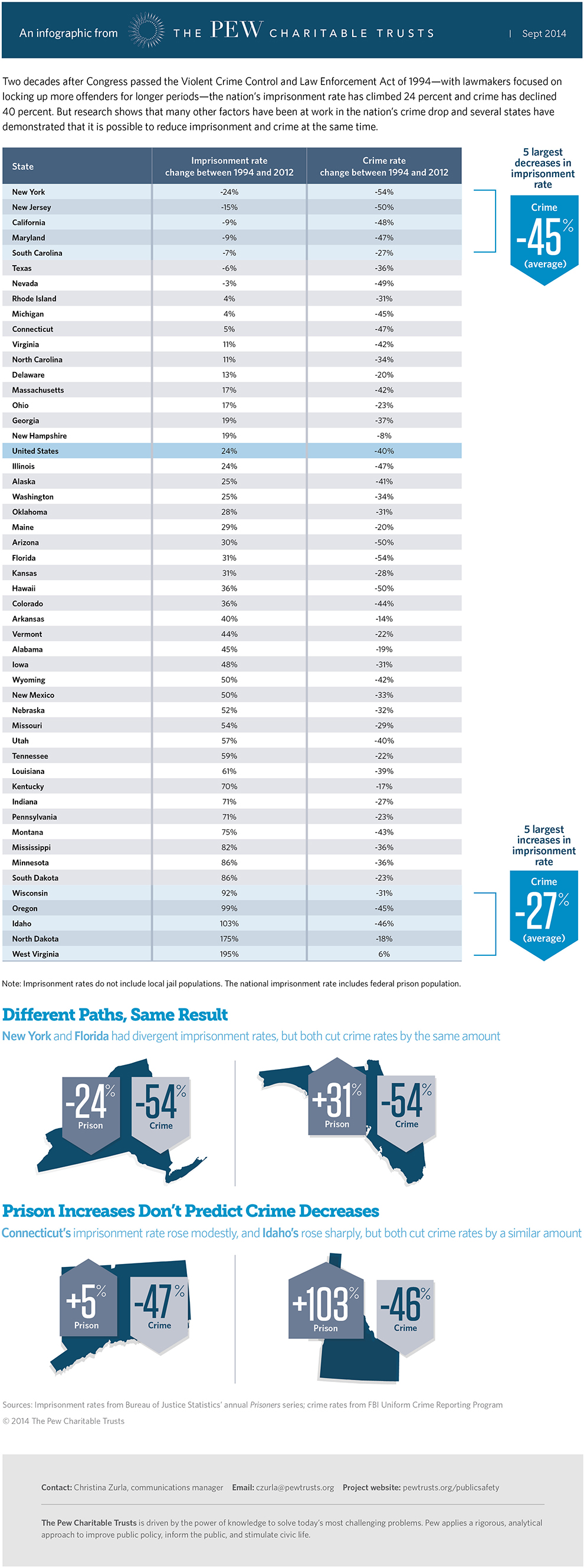 Crime drop since 1994 has been bigger in states that cut imprisonment rates.