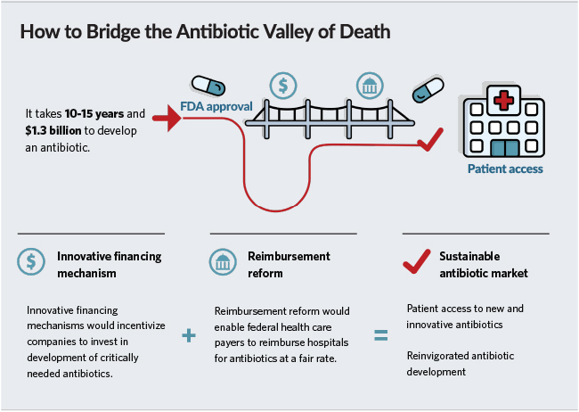 As a result, the companies making them are going bankrupt, and many potentially lifesaving drugs end up falling into an antibiotic valley of death—dropping out of production before they can reach patients.