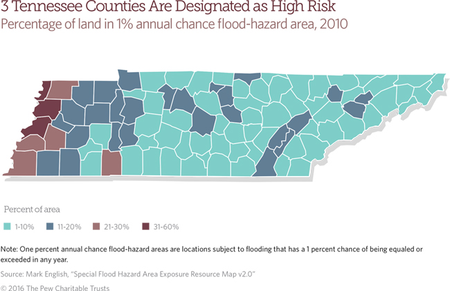 2. Federal Emergency Management Agency, “Disaster Declarations,” accessed May 26, 2016, https://www.fema.gov/disasters. Sum of individual assistance and public assistance for Tennessee flood-related major disaster and emergency declarations from 2000 to 2015.