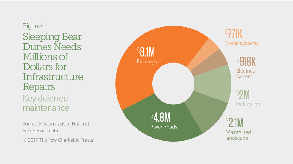 Sleeping Bear Dunes National Lakeshore needs $20 million in repairs, including $2 million for campgrounds and picnic areas.