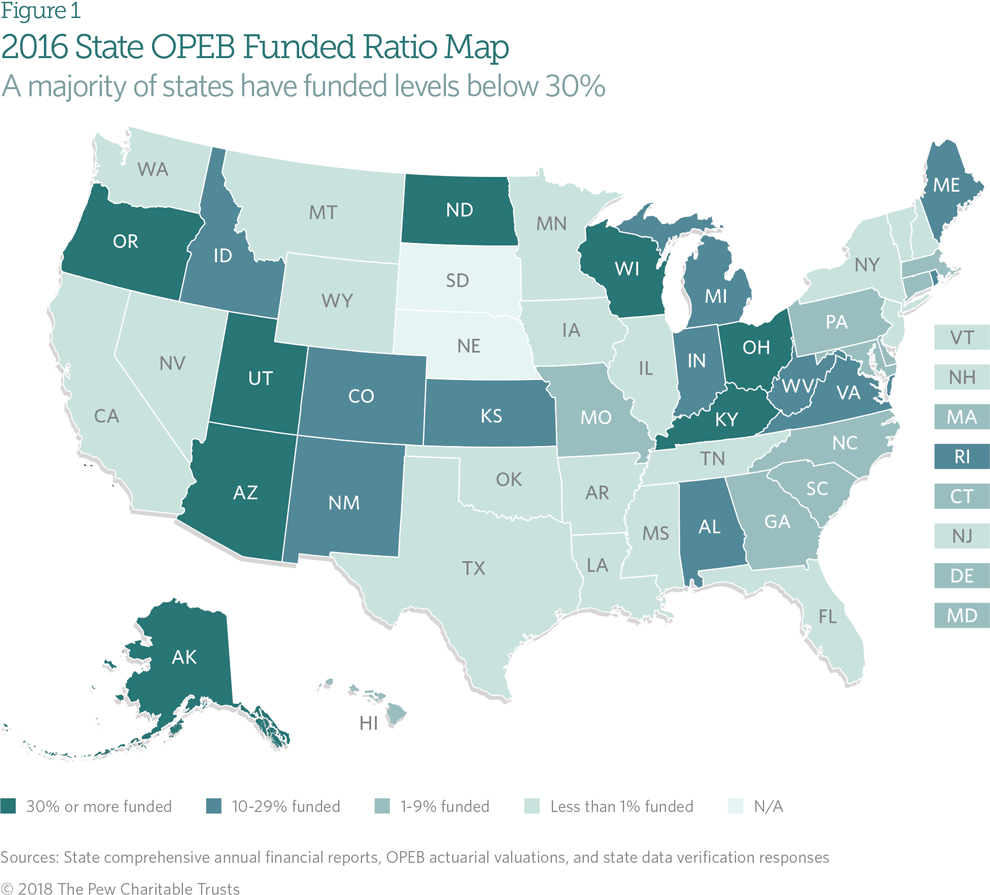 Note: An earlier version of this fact sheet included a material error in New York’s OPEB data that resulted in inaccurate U.S. totals. In addition, the fact sheet contained discrepancies or outdated information for several states. This version, published on Feb. 8, 2019, contains corrected and updated state-level data and accurate U.S. data.