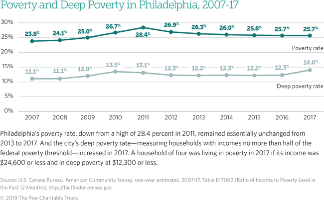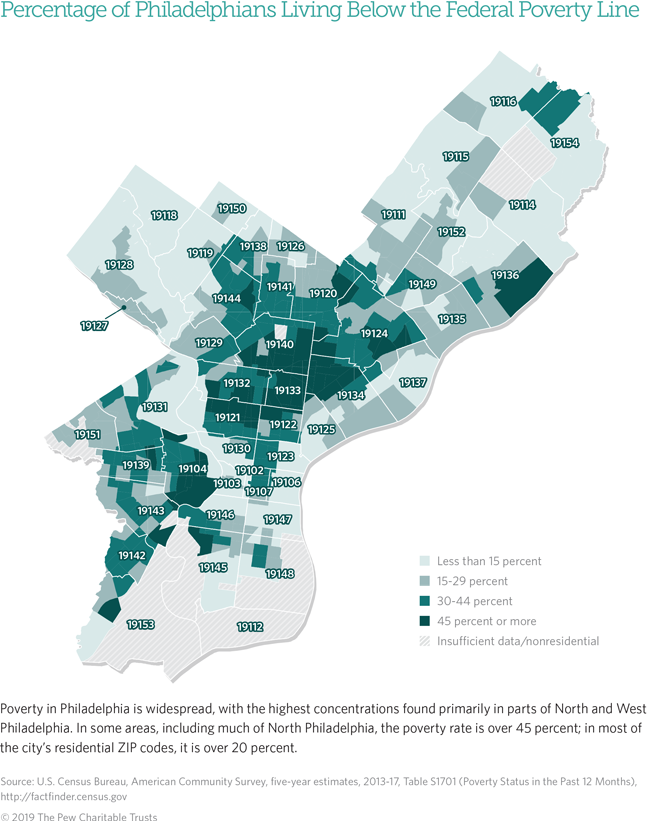 As highlighted in Pew’s 2018 report “Philadelphia’s Poor: Experiences From Below the Poverty Line,” this is about more than money. It affects health outcomes, employment prospects, exposure to crime, and access to quality schools.