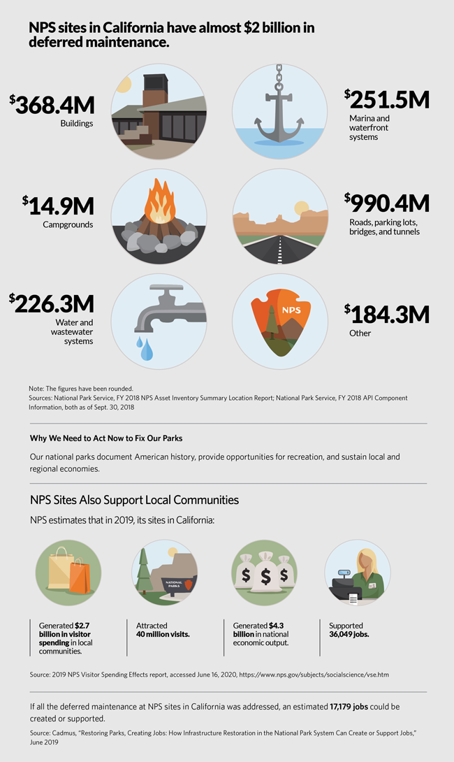 This page was updated on Feb. 23, 2021, to reflect the latest figures on deferred maintenance at National Park Service sites both in California and nationwide.