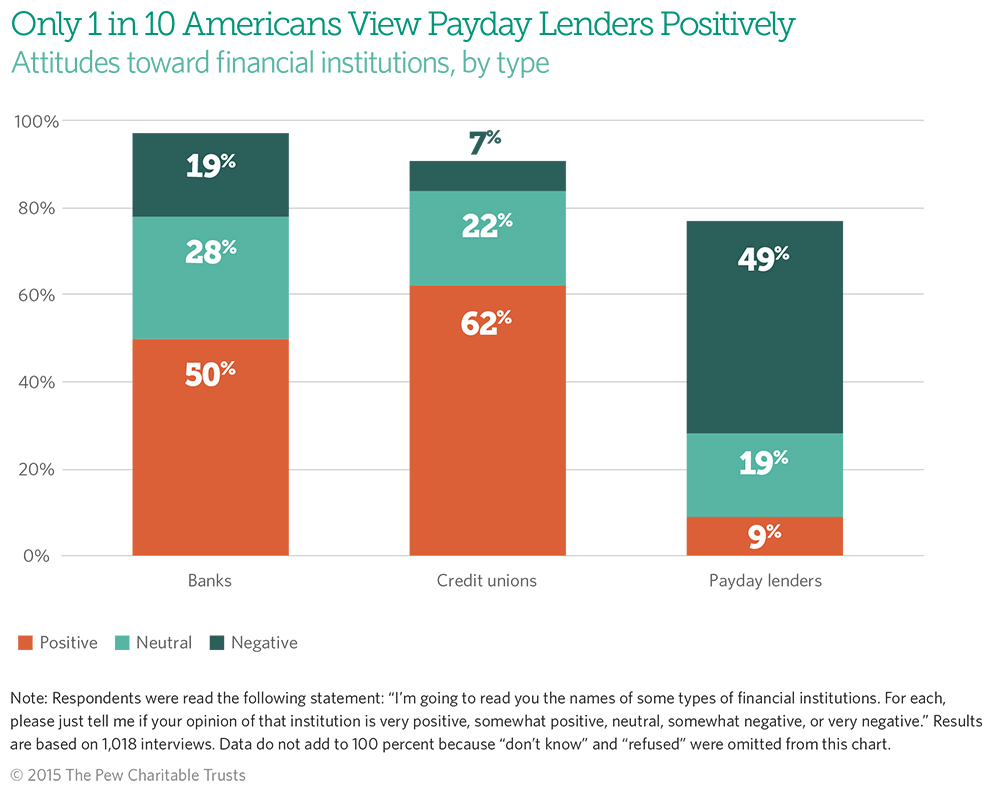 Negative views of payday lenders outnumber positive ones by a 5-1 ratio.