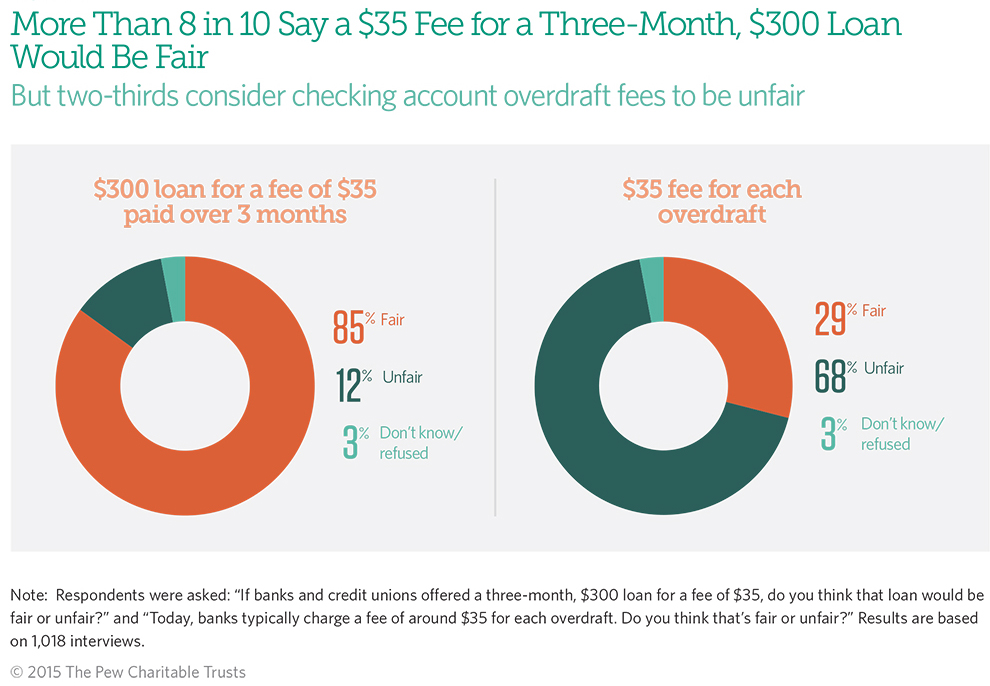 Americans consider checking account overdraft fees to be unfair, but they view a similar fee for a three-month, $300 loan as fair. The CFPB is considering new policies for regulating overdraft practices and small-dollar loans.