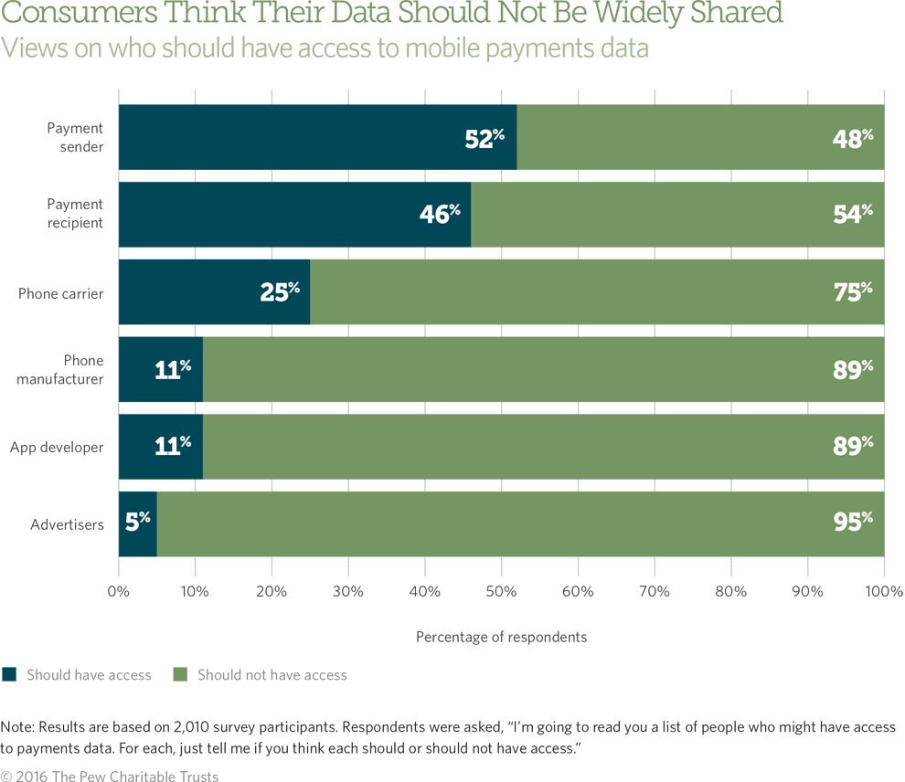 - Consumers want the data they generate by use of mobile payments to be secure and protected and access to it to be limited across entities, from phone carriers to app developers and advertisers.