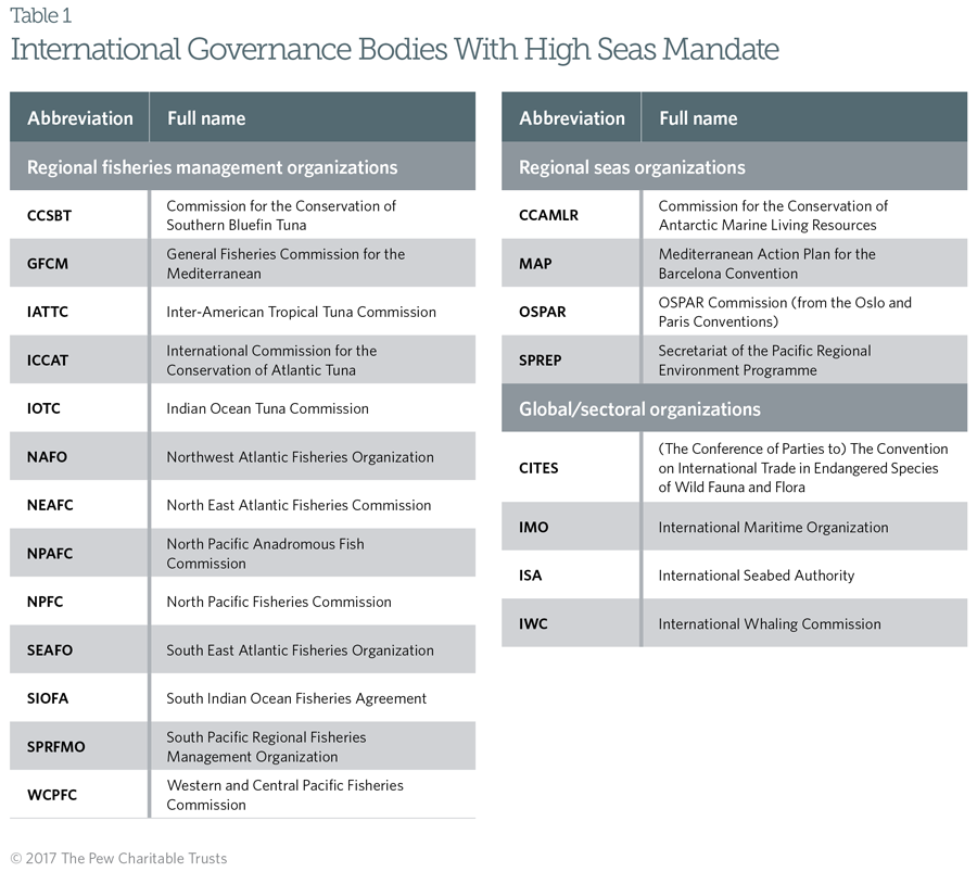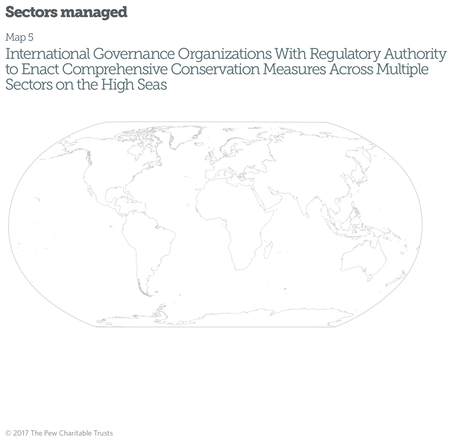 Although there are nearly 20 high seas governance organizations, none has a comprehensive cross-sectoral mandate with regulatory authority and a focus on conservation in areas beyond national jurisdiction.