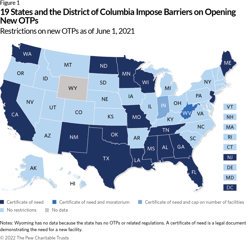 Nineteen states and the District of Columbia restrict providers from opening new OTPs in some way: