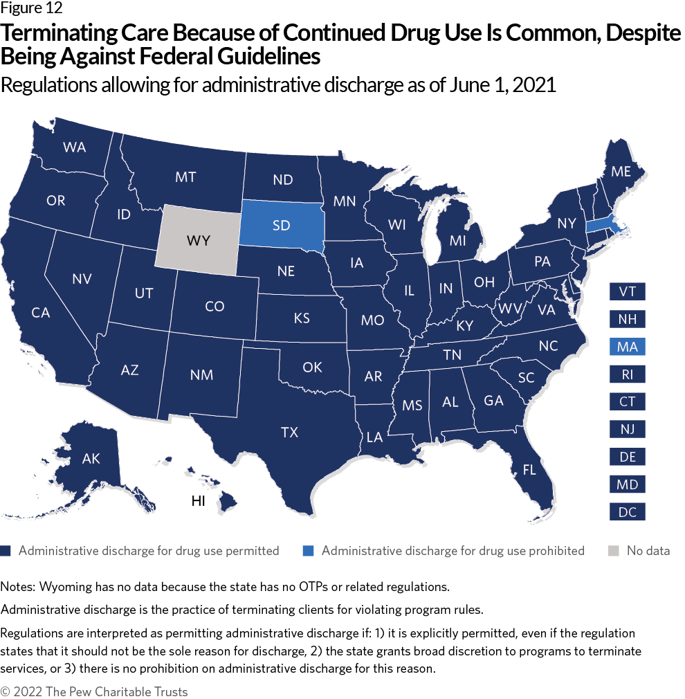 All states also allow administrative discharge for nonparticipation in counseling or other ancillary services, even though the American Society of Addiction Medicine says the decision to decline these services should not affect a patient’s ability to obtain MOUD.26