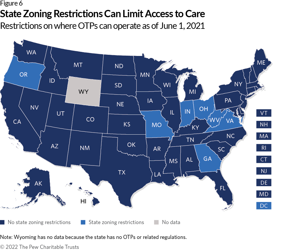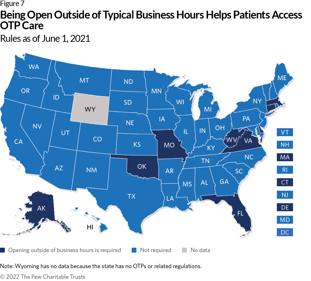 Seven states and the District of Columbia have these rules. However, in the District, the regulation supports access to care because OTPs are required to be located near public transportation.