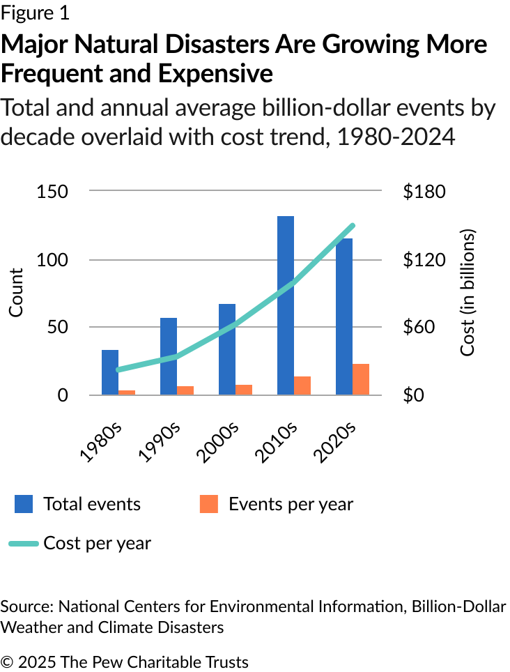 Occasional reports on natural disaster costs can provide valuable snapshots. But to make well-informed budgeting decisions, policymakers need regular updates that outline trends in disaster frequency, severity, and expenditures and provide relevant context and detail about the spending.