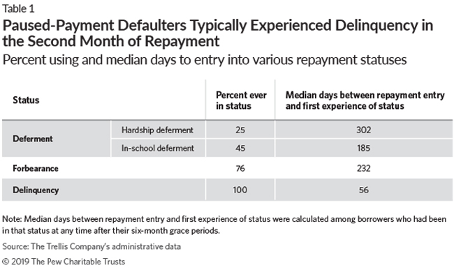 • Paused-payment defaulters: These borrowers paused payments using deferments or forbearances before defaulting. (See “Key Elements of Loan Repayment” for more information about deferments and forbearances.)