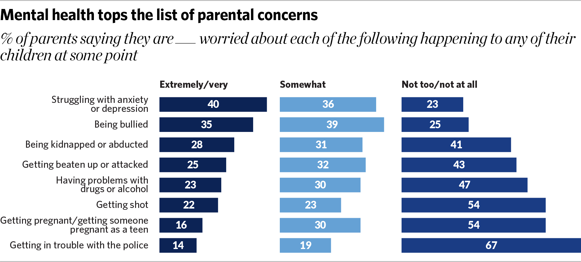 Four in 10 U.S. parents told Pew Research Center in 2022 that they’re extremely or very worried about their children struggling with anxiety or depression.