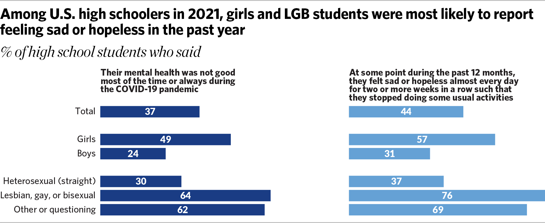 Even before the COVID-19 pandemic, U.S. teenagers were worried about their mental health. A 2019 Pew Research Center survey found that 70% of teenagers said anxiety and depression were major problems for people their age—topping a list of concerns that also included bullying, drugs, alcohol, poverty, and teen pregnancy. The pandemic has only intensified the discussion around Americans and mental health.