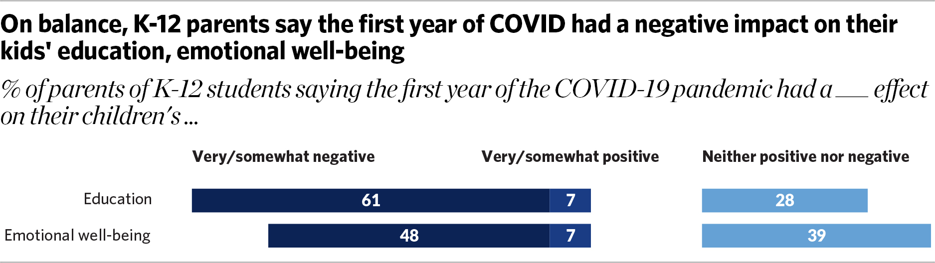 Parents told Pew Research Center that the first year of the pandemic affected their children’s emotional health.