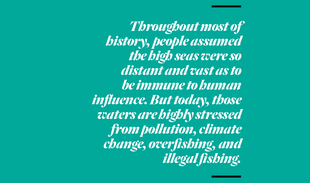 Throughout most of history, people assumed the high seas were so distant and vast as to be immune to human influence. But today, those waters are highly stressed from pollution, climate change, overfishing, and illegal fishing, among other human-wrought ills.