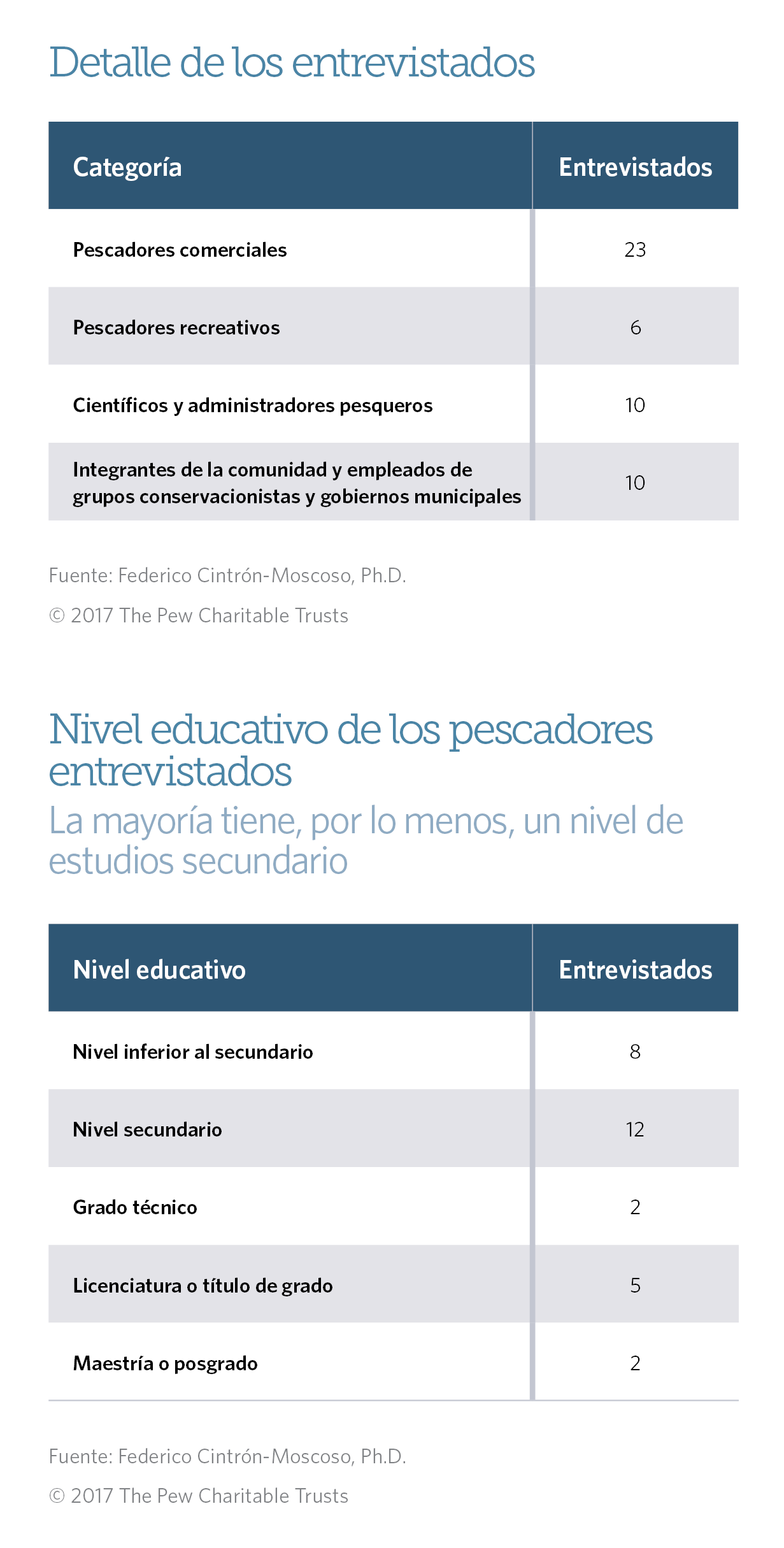 Las entrevistas, subvencionadas por The Pew Charitable Trusts, forman parte de un esfuerzo para entender mejor los puntos de vista de los pescadores y administradores pesqueros, lo cual, a su vez, puede contribuir al establecimiento de planes y reglas que permitan la pesca sin dejar de proteger los valiosos recursos marinos de la zona.