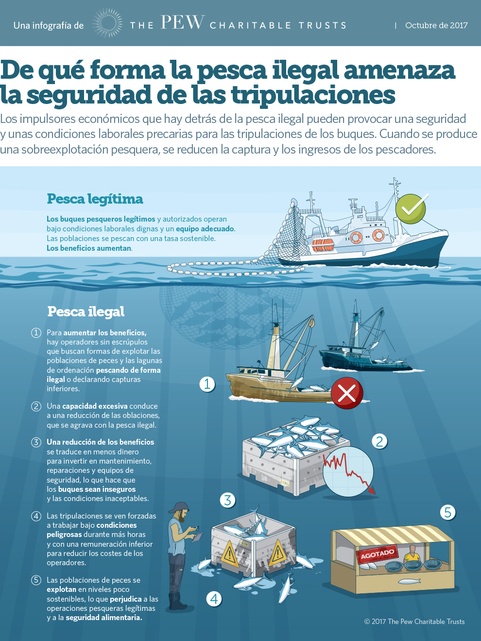 Los impulsores económicos que hay detrás de la pesca ilegal pueden provocar una seguridad y unas condiciones laborales precarias para las tripulaciones de los buques. Cuando se produce una sobreexplotación pesquera, se reducen la captura y los ingresos de los pescadores.