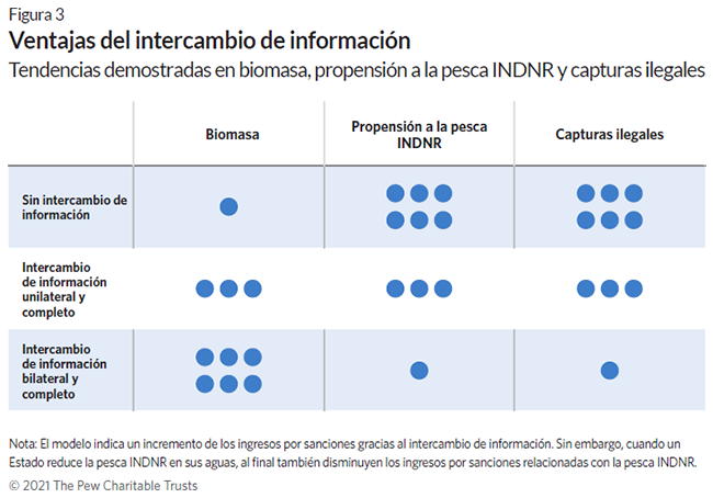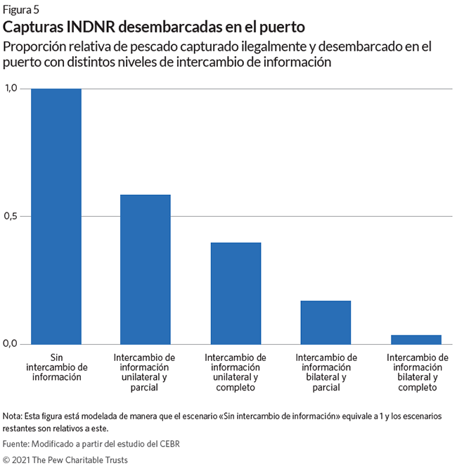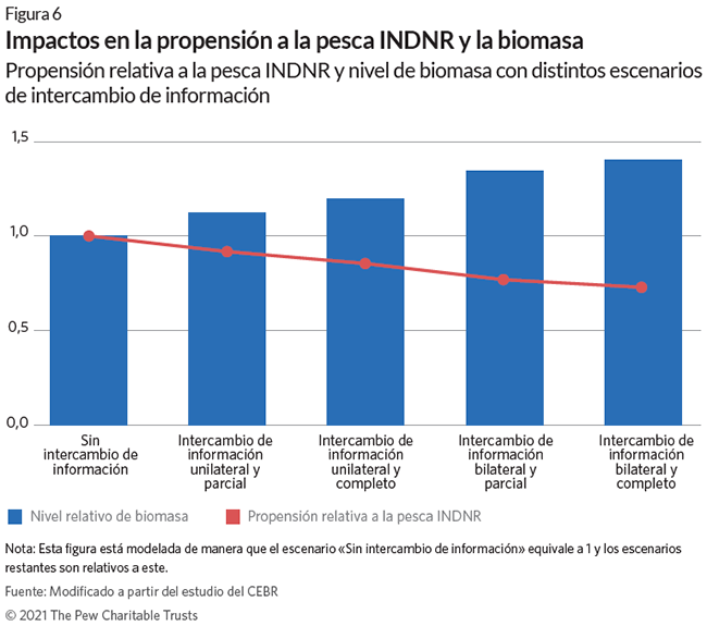 En 2020, el Centre for Economics and Business Research (CEBR), una consultora británica, publicó un estudio1 encargado por The Pew Charitable Trusts en que establecía un modelo del impacto probable de intercambiar información sobre la actividad pesquera entre Estados costeros vecinos. Estas fueron sus conclusiones más destacadas: