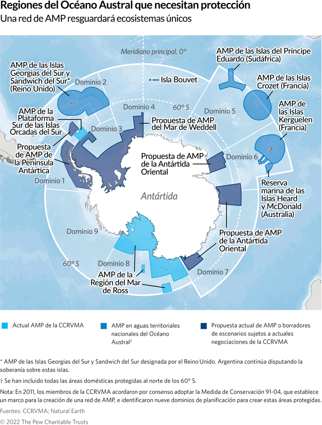 Preservar los recursos biológicos únicos de la Antártida es un objetivo importante y alcanzable. En 2011, los Gobiernos miembro de la Comisión para la Conservación de los Recursos Marinos Vivos Antárticos (CCRVMA) acordaron por consenso crear una red representativa de AMP en el Océano Austral y adoptar un marco para establecer la red.