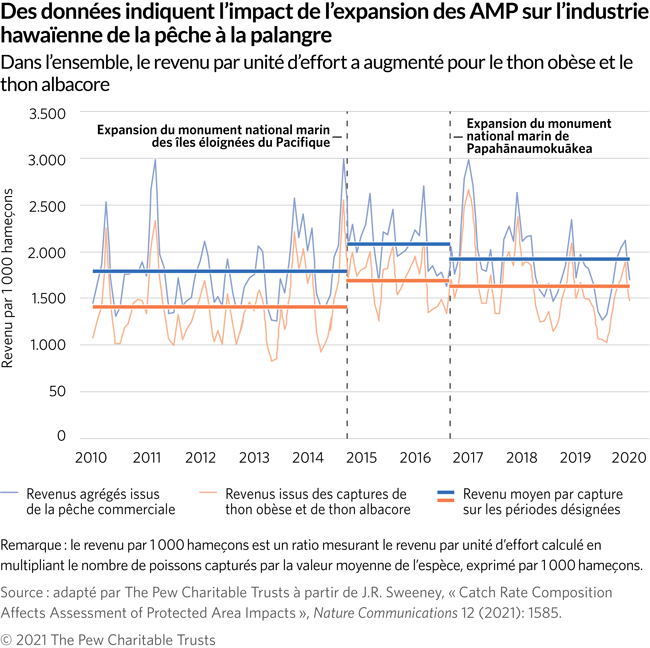 Les données montrent que les revenus par unité d'effort ont généralement augmenté depuis le début des extensions en 2014, et ont encore augmenté pendant les 16 mois qui ont suivi l'agrandissement du monument Papahānaumokuākea.