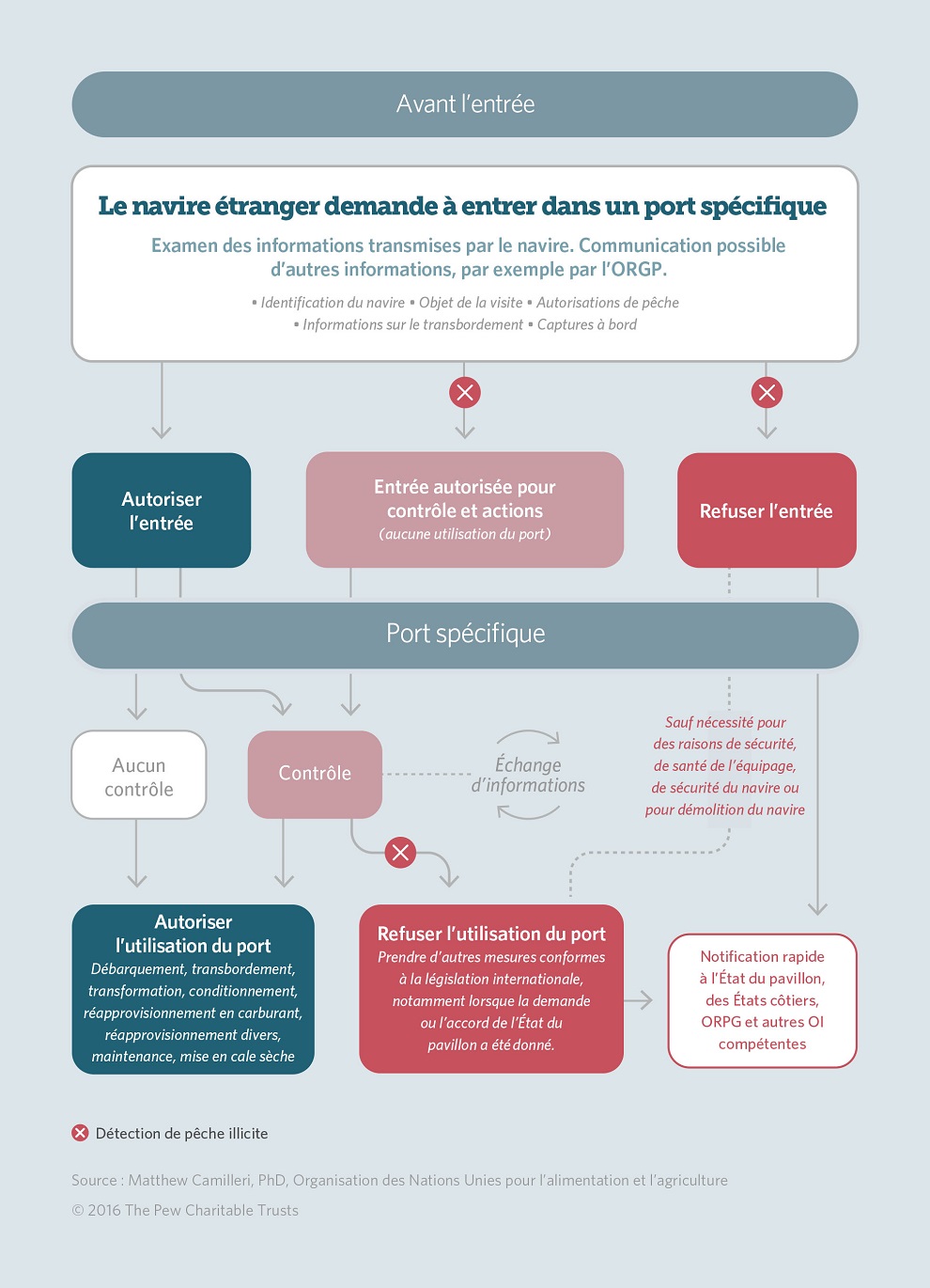 L’Accord PSMA, dont le nom officiel en français est « l’Accord de la FAO relatif aux mesures du ressort de l’État du port visant à visant à prévenir, contrecarrer et éliminer la pêche illicite, non déclarée et non réglementée »4, est un outil à moindre coût et efficace pour lutter contre la pêche INN. Les contrôles dans les ports sont moins onéreux et plus sûrs que le repérage, l’arraisonnement et l’inspection des navires en mer. De même, les contrôles découragent plus volontiers la pêche illicite en rendant plus difficile la vente de poissons capturés illégalement. Plus le nombre de pays appliquant le traité et harmonisant leurs mesures liées à l’État du port sera important, plus la pêche illicite, non déclarée et non réglementée sera une activité risquée et peu rentable. Tel est l’objectif ultime visé par la FAO avec le PSMA.