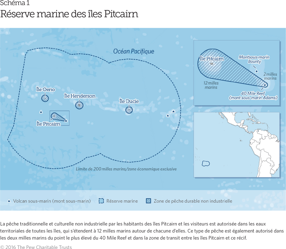 Le gouvernement britannique a annoncé le classement de la réserve marine en mars 2015, sous réserve de la capacité à mettre en place un système de surveillance efficace. La décision initiale est intervenue après plusieurs années de recherches environnementales et de plaidoyers par The Pew Charitable Trusts et les organisations non gouvernementales travaillant avec le conseil de l’île Pitcairn et le bureau des Affaires étrangères et du Commonwealth (FCO). Les approches traditionnelles en matière de surveillance maritime, tel l’emploi d’avions et de navires patrouilleurs, ont posé des défis intrinsèques en termes d’efficacité et de coût pour la gestion d’une réserve marine aussi lointaine, située approximativement entre l’Amérique du Sud et l’Australie.1
