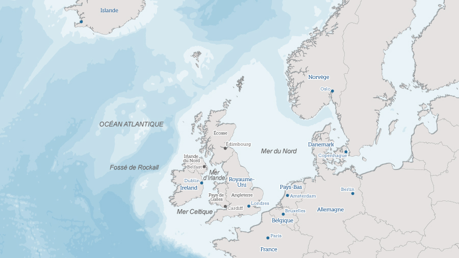- À l'ouest de l'Écosse et de l'Irlande, la pêcherie de merlan bleu était la plus importante dans le nord-est de l'Atlantique en 2003 avant de complètement s’effondrer en 2011.