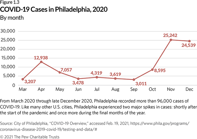Philadelphia recorded more than 96,000 COVID-19 cases and 2,500 deaths from the virus in 2020, with the death toll surpassing 3,000 by mid-February 2021. Although the city’s hospitals never ran out of beds and the number of weekly deaths wasn’t as high as it was elsewhere, the impact on the city was devastating all the same.