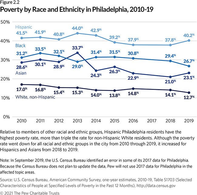 - When will progress be made on the racial and ethnic inequities highlighted by the pandemic and brought to greater attention by the burgeoning racial justice movement? Before COVID-19, the median household income for Black Philadelphians was 52% of that for White Philadelphians; only 6% of businesses with employees had Black proprietors; and 46% of Black residents were cost-burdened by their housing, compared with 32% of White people.