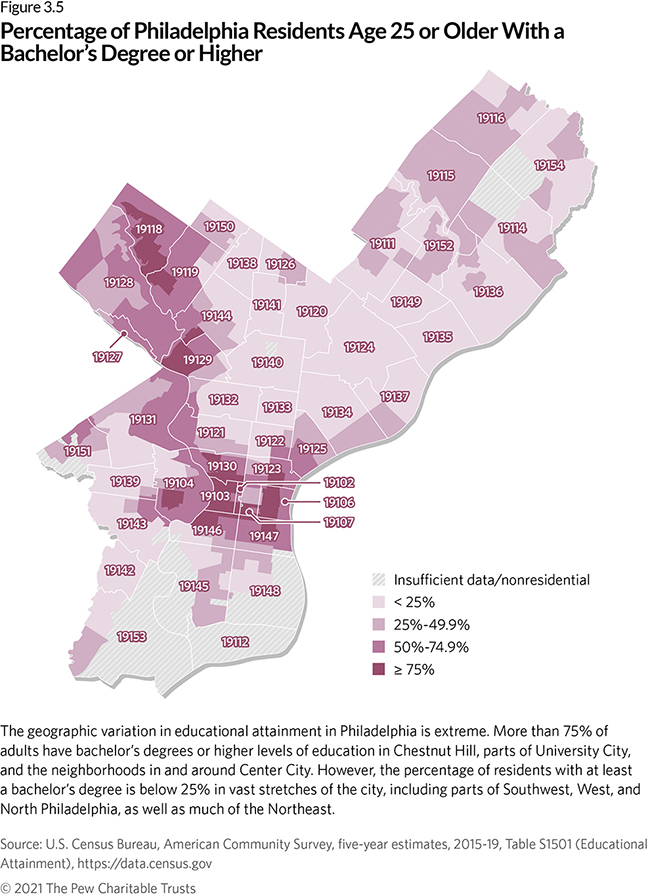 Pre-pandemic census numbers showed 31% of adult Philadelphians with bachelor’s degrees, the highest percentage ever recorded in the city, and 49% of 3- and 4-year-olds in school, which matched the national average.