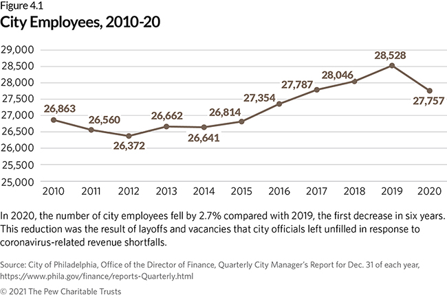 In planning the city budget for fiscal 2021, which began on July 1, 2020, Philadelphia officials were confronted with a projected $749 million budget shortfall. They closed the gap through various steps: They took $229 million from budget reserves, increased some taxes and fees, and reduced the payroll through layoffs and attrition. Some of these budget-balancing tactics, particularly the reliance on reserves, won’t be available for the upcoming fiscal year.