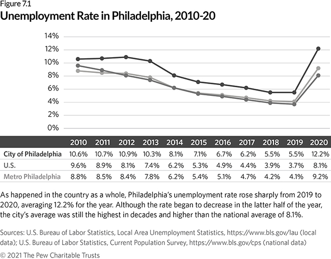 As in much of the country, COVID-19 caused sudden and severe damage to Philadelphia’s economy in 2020.