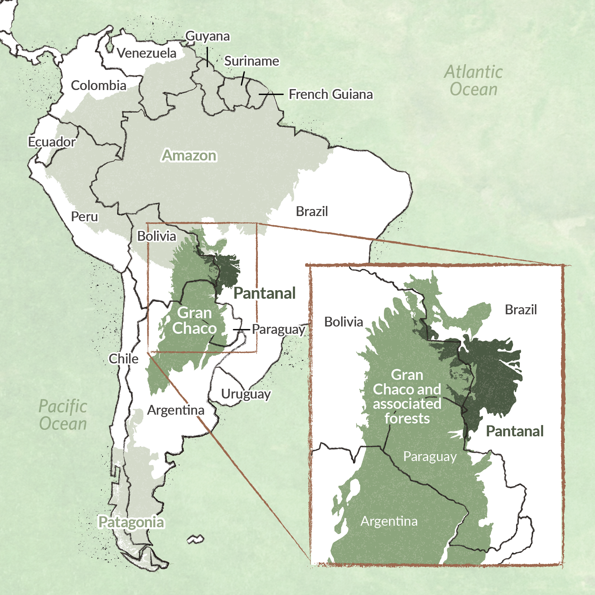 Ainda que as florestas secas e de água doce dos biomas do Pantanal e do Gran Chaco cubram uma área imensa, maior do que o estado da Califórnia, elas têm recebido menos atenção internacional do que outras regiões florestais na América do Sul, como a Amazônia e a Patagônia.