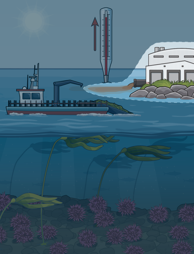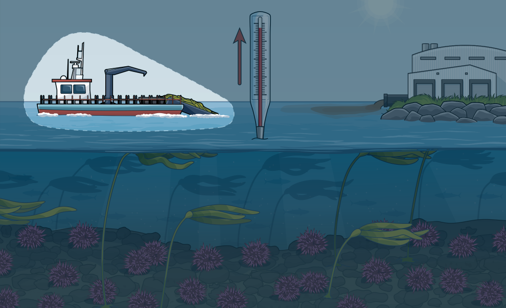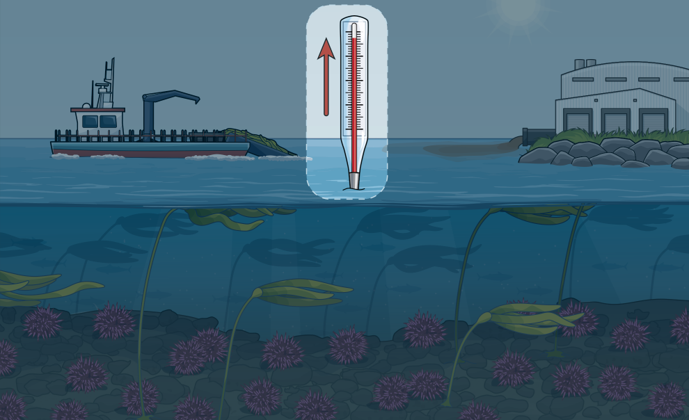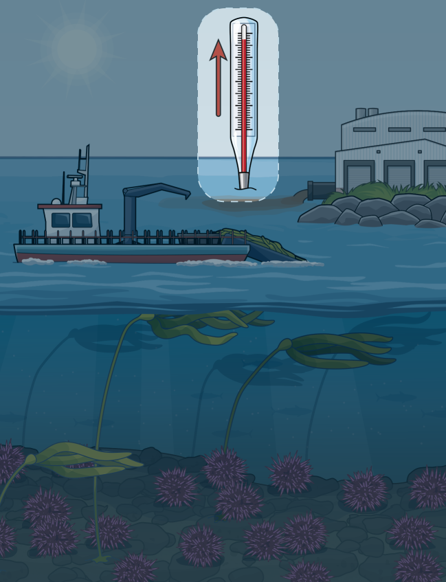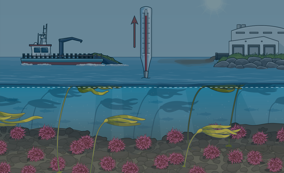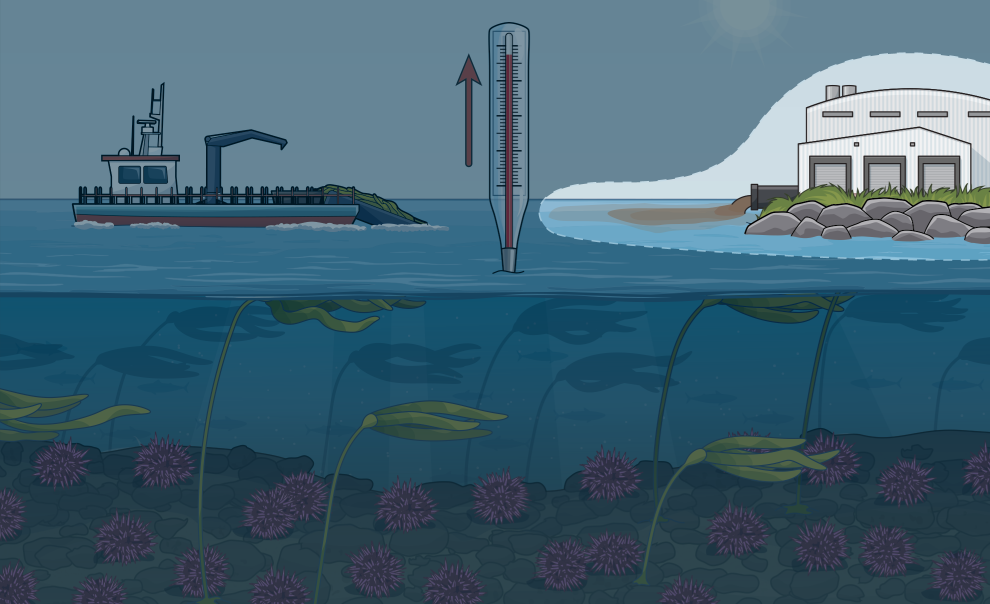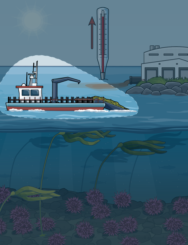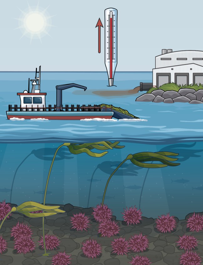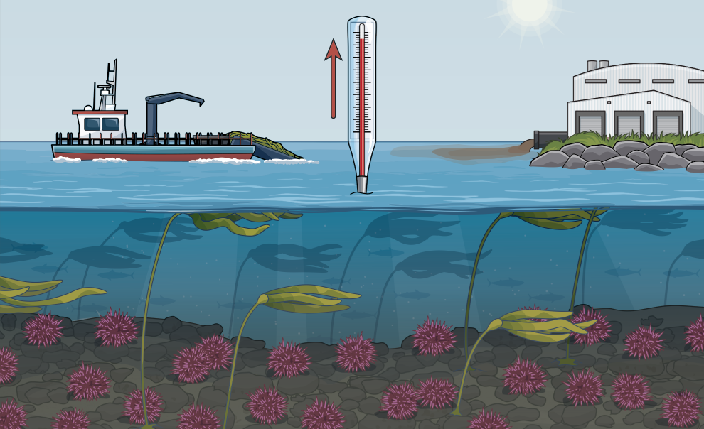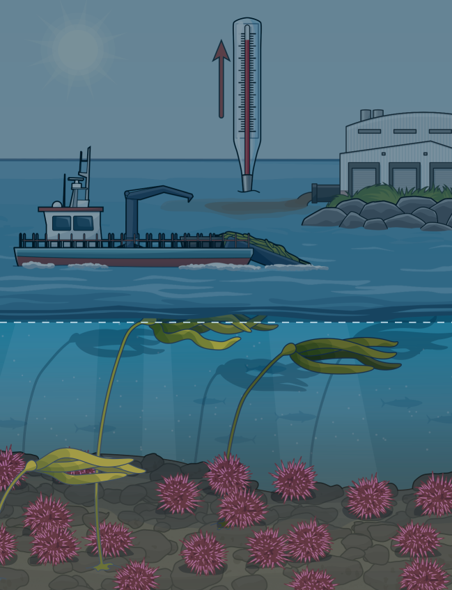 Sea level rise, warming waters, increased storm activity, and other impacts of climate change are causing kelp to decline.