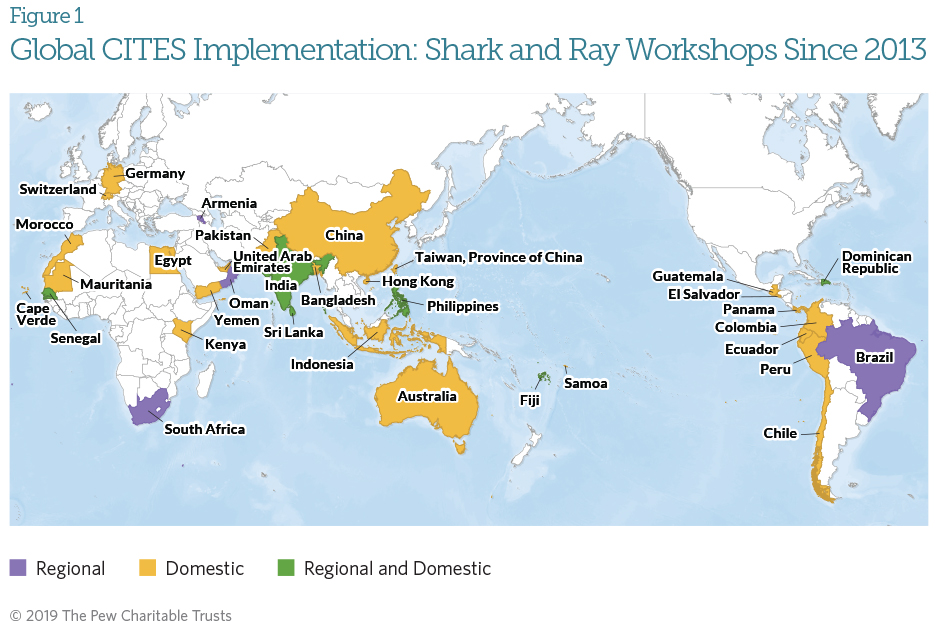 Since 2016, more than 70 governments have participated in regional and domestic workshops on how to ensure that trade in sharks and rays listed on Appendix II is legal and sustainable.