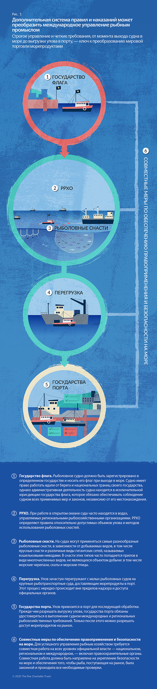 Несмотря на значительные пробелы в управлении и надзоре за рыбным промыслом, у правительств государств флага, берега, порта и рынка сбыта уже есть множество инструментов, позволяющих усилить контроль и повысить глобальные стандарты регулирования промысла. Международные соглашения и договоры в сочетании с индивидуальными действиями государств флага могут оказать большое влияние на ситуацию в мировом океане и здоровье рыбного хозяйства.