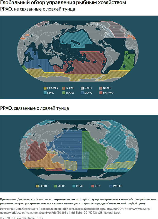 Многие коммерчески важные виды рыб мигрируют по океану в поисках пищи. Пути их миграции проходят через зоны различных национальных юрисдикций и открытый океан, что является существенным фактором для управления рыбными запасами и нацеленными на них рыболовецкими флотами. Правила вылова этой рыбы (сколько, кто, как и когда) определяются комбинацией национальных законов, положений и требований региональных рыбохозяйственных организаций (РРХО). РРХО — это международные органы, в состав которых входят правительства, имеющие практический и/или финансовый интерес к управлению и сохранению рыбных запасов в конкретном регионе и готовые участвовать в скоординированном управлении этими запасами.