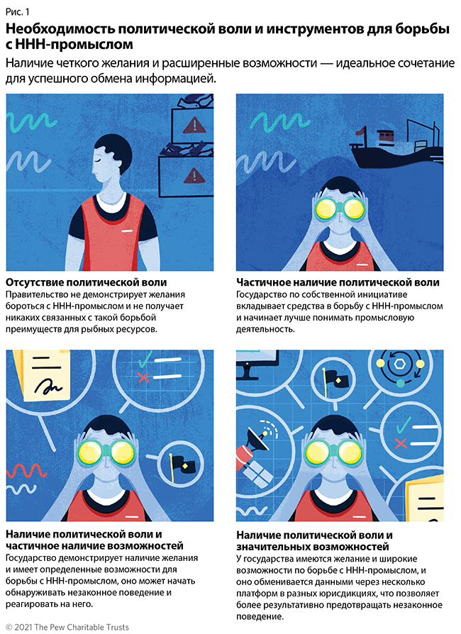 В последние годы обмен информацией стал считаться важным элементом борьбы с ННН-промыслом. Соглашение о мерах государства порта ФАО от 2016 года, ставшее первым международным соглашением, направленным на противодействие угрозе ННН-промысла и предотвращение попадания незаконного улова в цепочку поставок на берегу, содержит требование обмена между странами информацией о судах и местах вылова рыбы. Хотя соглашение уже вступило в силу, его реализация идет медленно, особенно в том, что касается обмена информацией между странами и доступа к ней.