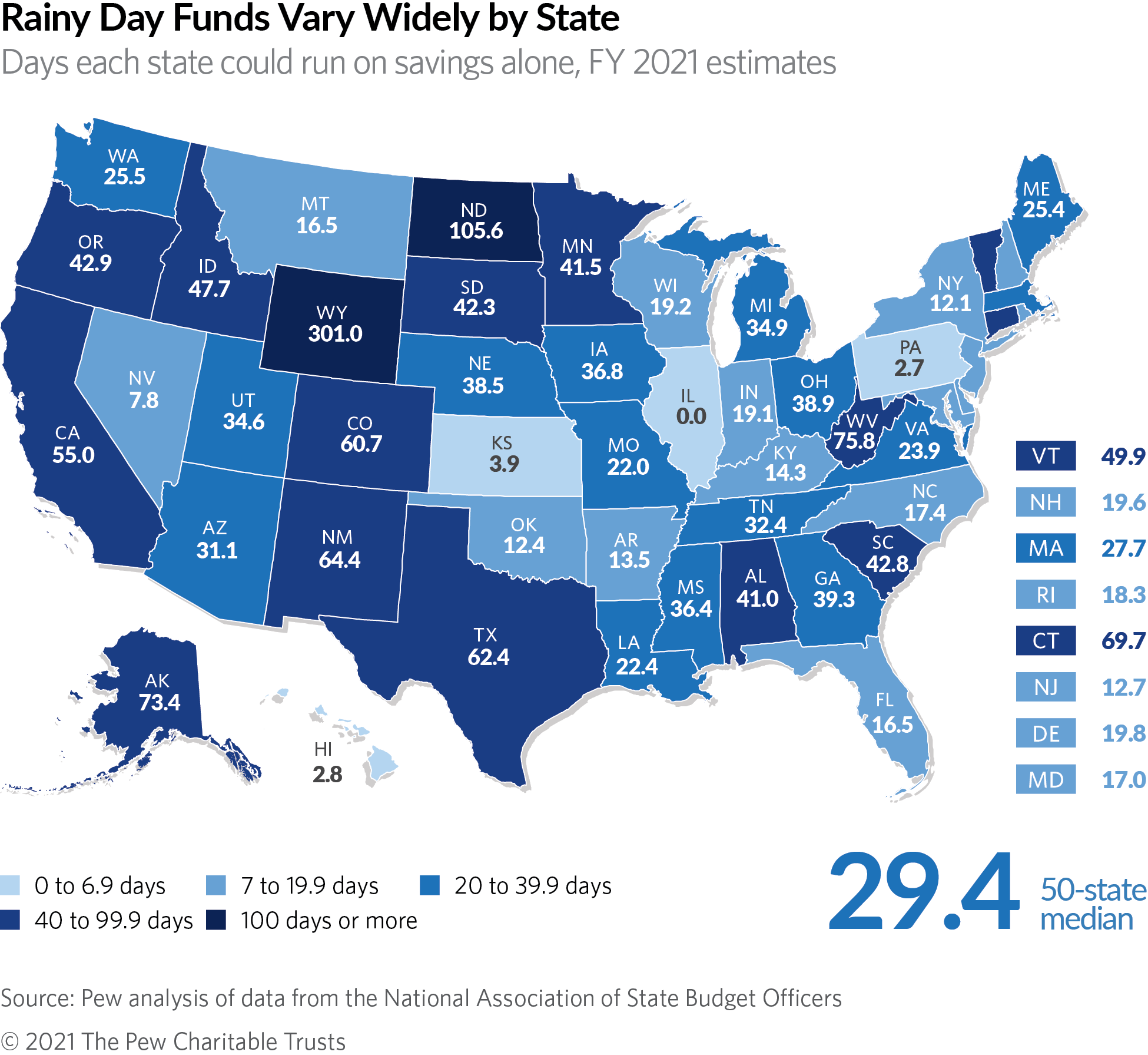 Editor’s note: On Oct. 21, 2021, this article was updated to correct a reference in the third paragraph to states’ total rainy day fund savings. The correct figure is $82.3 billion.