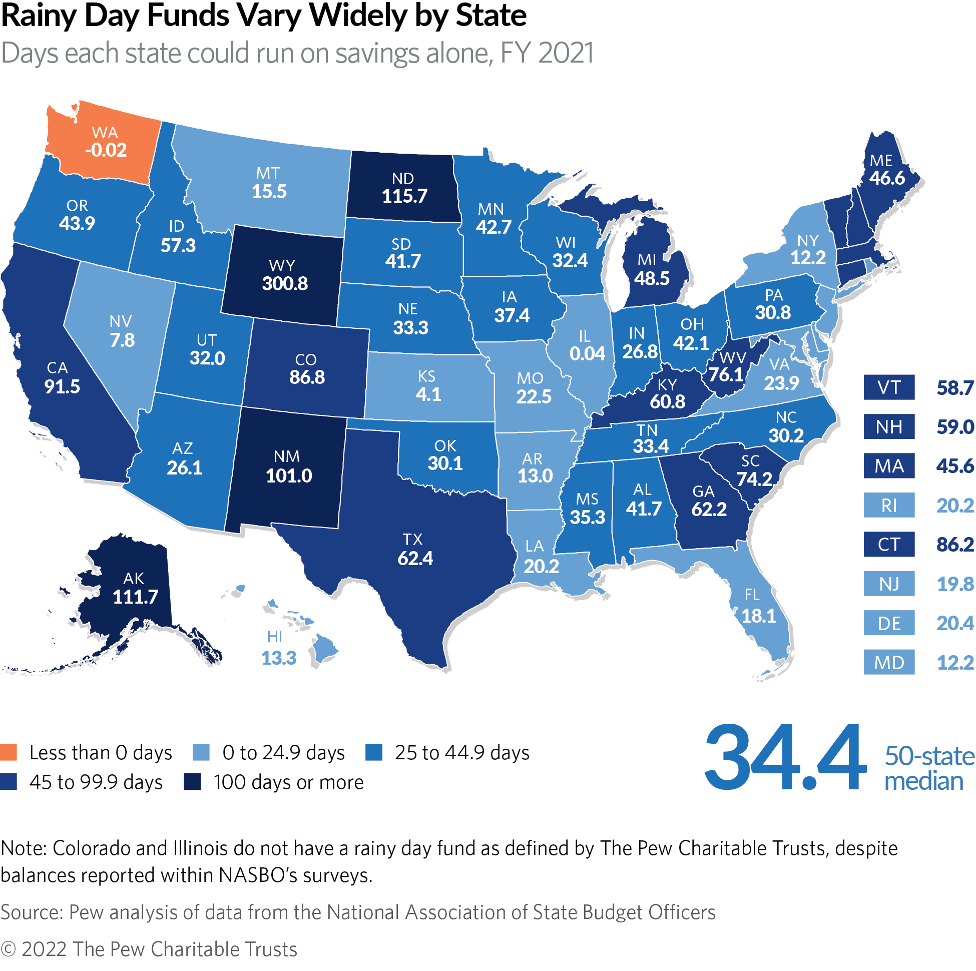 - No state had less than a week's worth of operating costs in total balances, for the first time in at least 20 years.