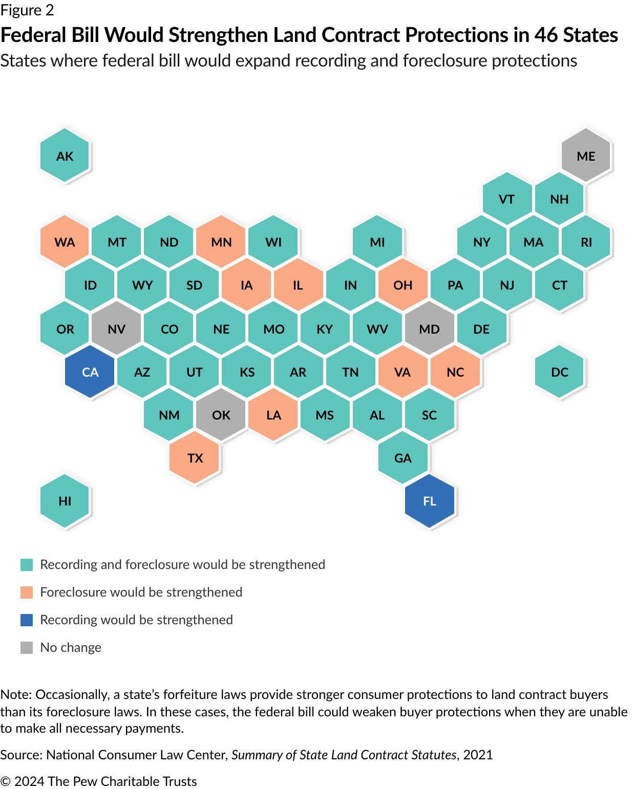Today’s land contract market is governed by a weak patchwork of state and federal laws. Only 21 states have enacted laws addressing these arrangements, and enforcement varies widely. Each year, states introduce measures to better regulate land contracts, but the legislation introduced in Congress this year marks the first time that the federal government has sought to establish minimum protections for buyers using these arrangements.