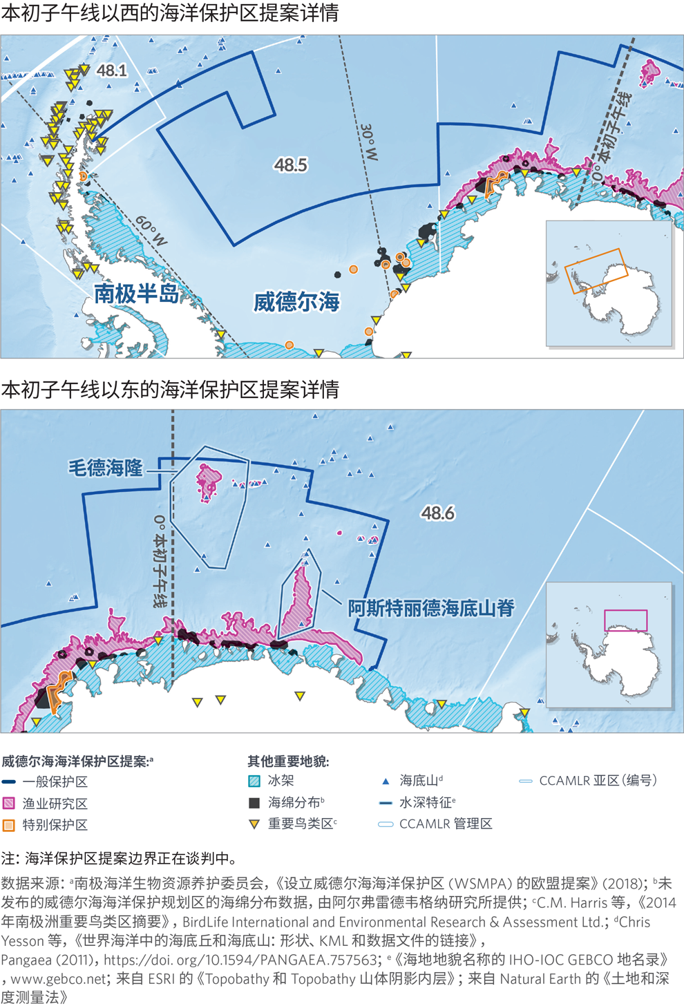 - CCAMLR 特里德海底山脊亚区 48.6 (Astrid Ridge) 中提议的 FRZ 和毛德海隆的边界和目标应明确,同时应调整边界以减少对优先保护区(例如阿斯 (Maud Rise)) 的影响。