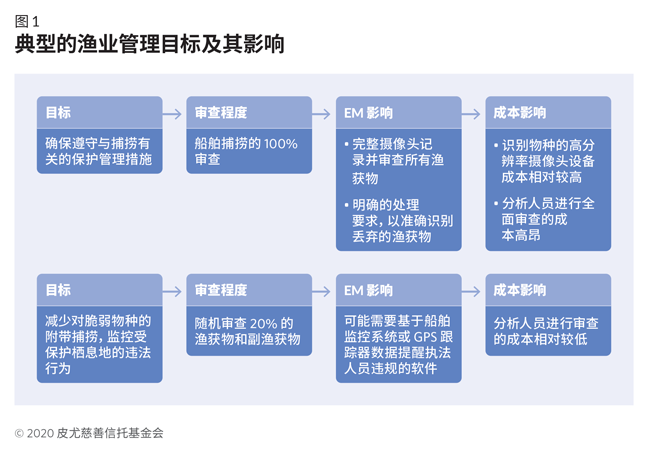 电子监控 (EM) 计划可以帮助区域渔业管理组织 (RFMO) 改进对渔船捕捞和其他船上活动的监督。为确保该计划有效,RFMO 应与利益攸关方协商,确定明确的目标。既定目标也将有助于确定必要的监控级别,以及 EM 系统将如何作为人类观察员的补充。
